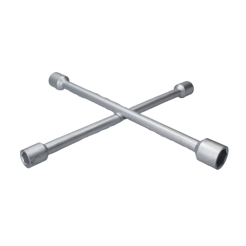Llave cruz de 4 bocas fabricada en acero reforzado, ideal para aflojar y ajustar tuercas de ruedas de forma rápida y segura. Compatible con las medidas más comunes de autos, brinda mayor palanca y torque gracias a su diseño en cruz. Herramienta indispensable para llevar en el vehículo y resolver cualquier cambio de rueda con facilidad.