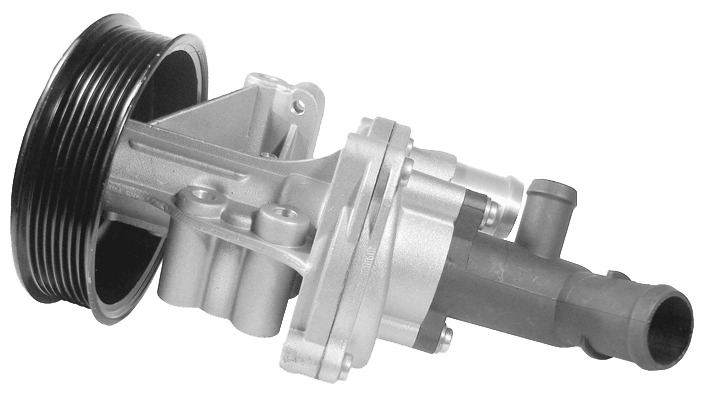 La bomba de agua es el dispositivo que hace circular el líquido refrigerante en el sistema de refrigeración del motor. Es accionada por una correa de transmisión y sólo funciona cuando el motor se encuentra encendido, va conectada al cigüeñal y hace circular el agua por el circuito de refrigeración y el motor, esto, se logra el intercambio de calor al ingresar el líquido por el radiador, el cual por corriente de aire disipa la temperatura. La bomba de agua es un componente vital para el buen funcionamiento del sistema que regula la temperatura con la cual el motor debe trabajar.
